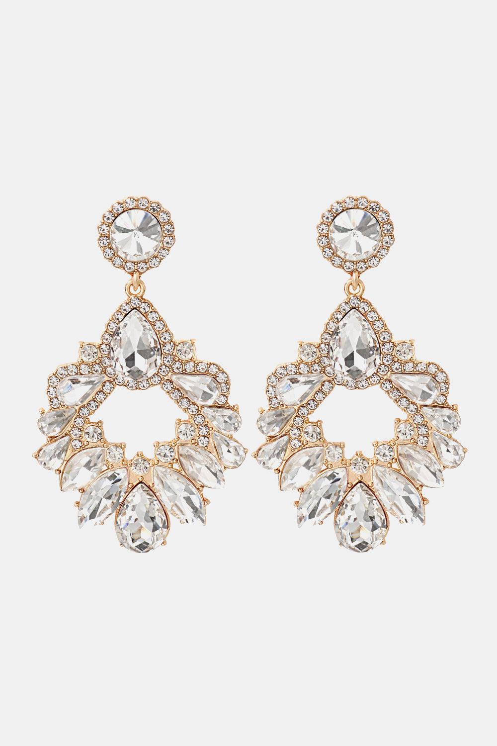Zinc Alloy Frame Glass Stone Dangle Earrings