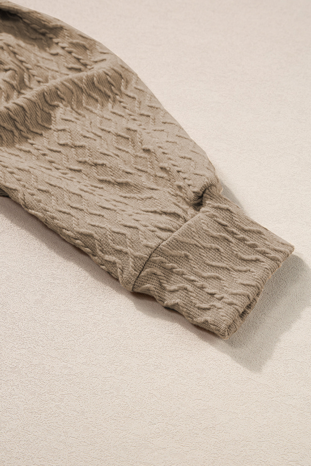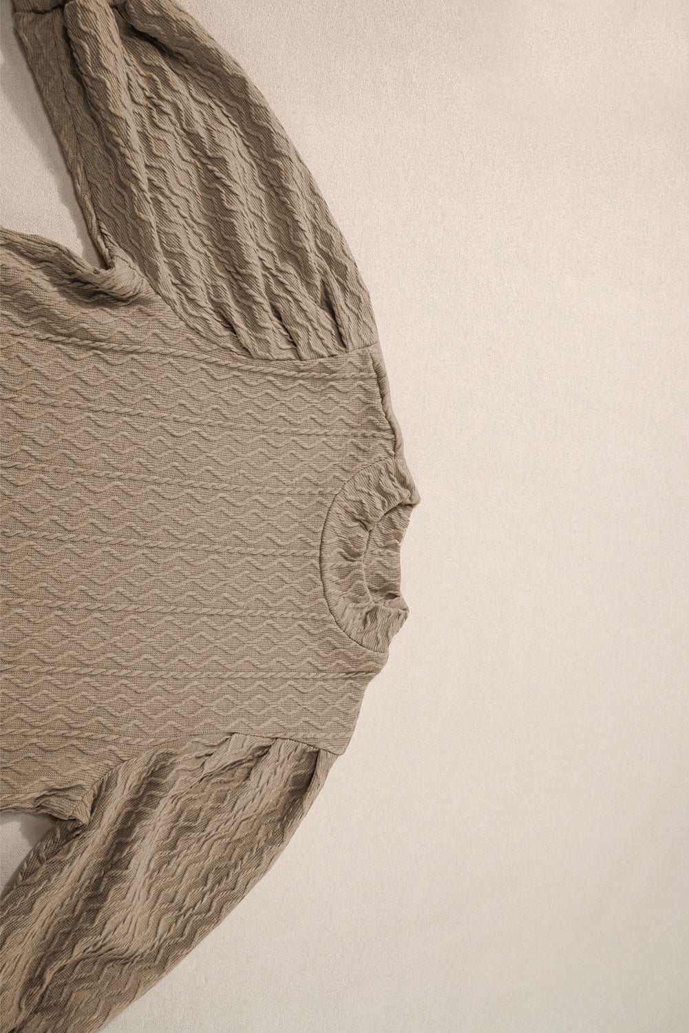 Simply Taupe Vintage Textured Puff Sleeve Mock Neck Top