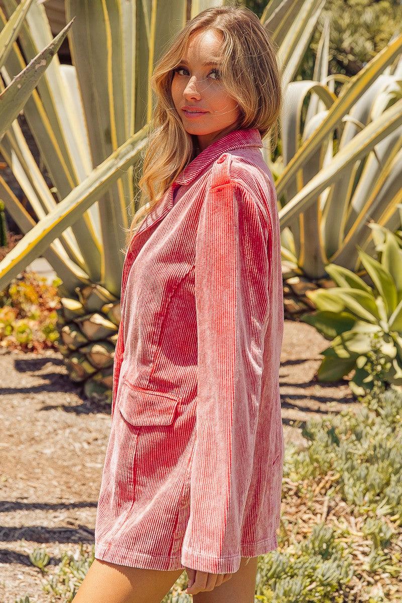 BiBi Ribbed Button Up Long Sleeve Blazer