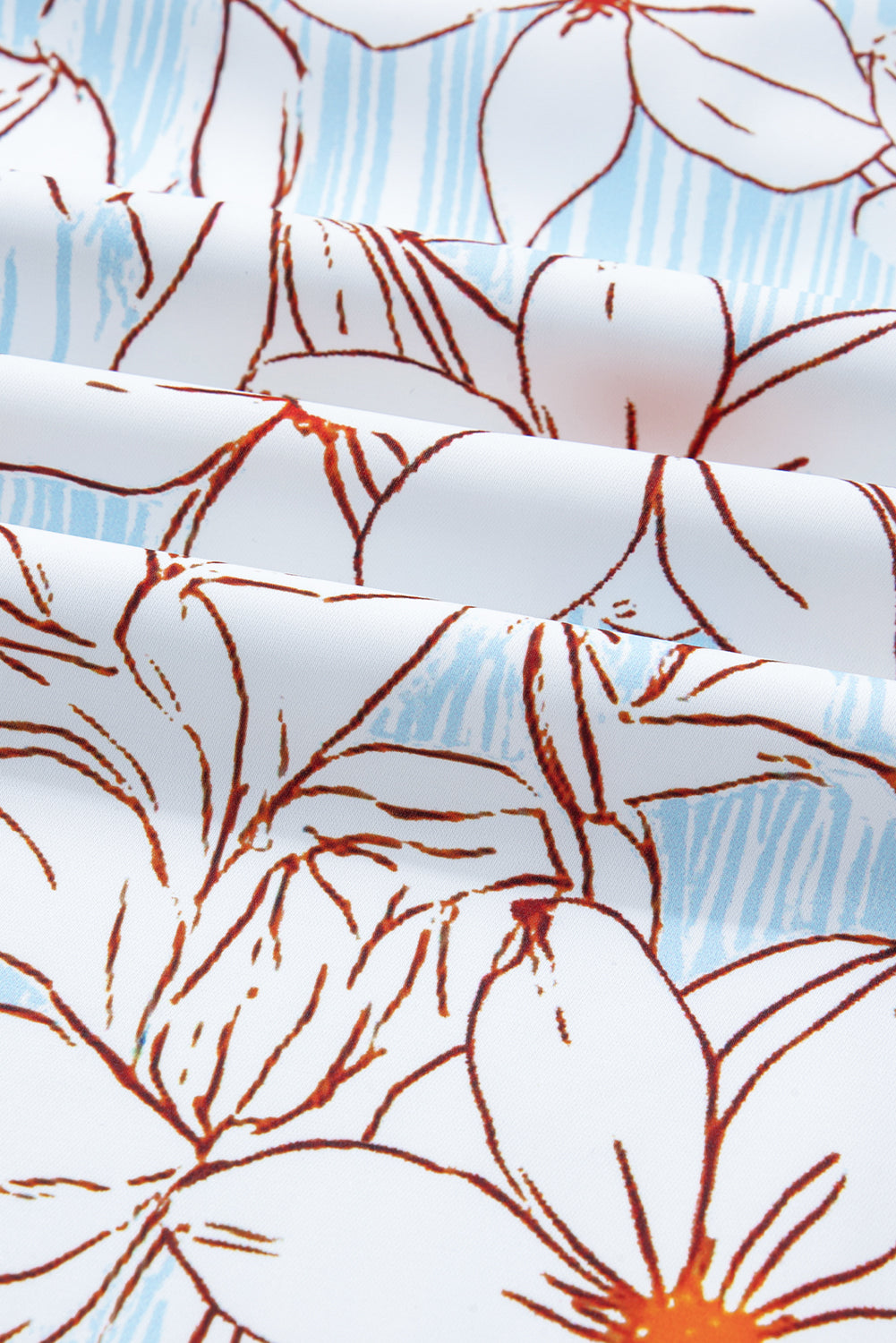 This brown floral print mini dress combines timeless elegance with modern style. Featuring a vibrant floral pattern, it adds a fresh and feminine flair to your wardrobe. The chic tie neck detail allows for customizable looks, while the 3/4 sleeves offer versatile coverage suitable for various seasons. The mini length enhances and flatters the legs, pairing effortlessly with boots or heels for a polished appearance. Perfect for both casual and dressier occasions, this dress balances comfort and sophistication with expert design.