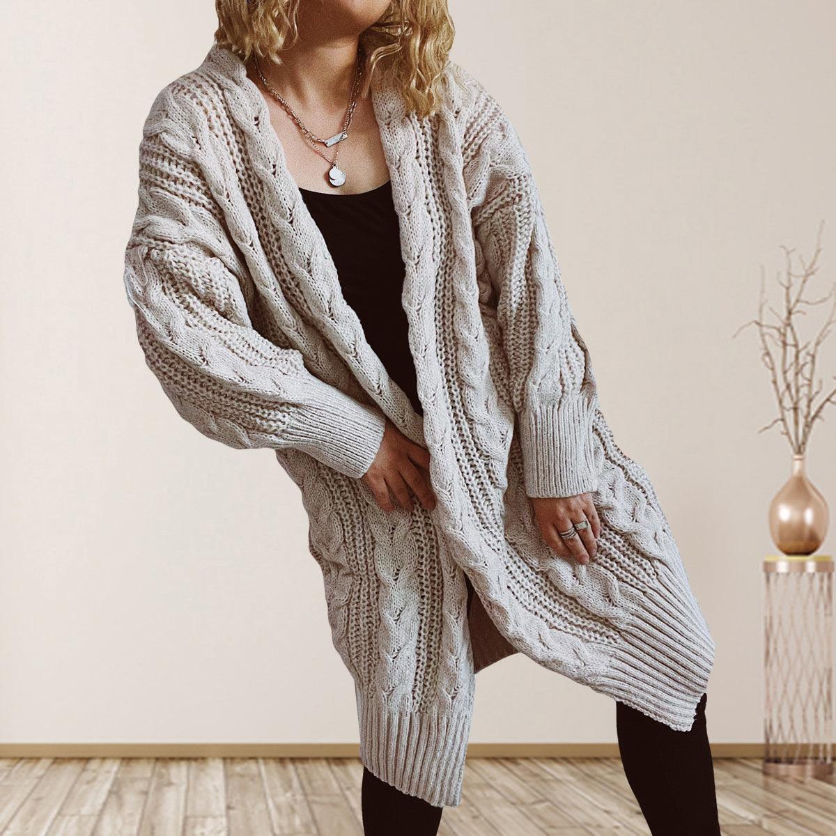 Cable-Knit Open Front Dropped Shoulder Cardigan