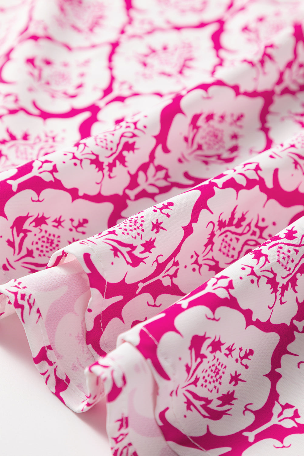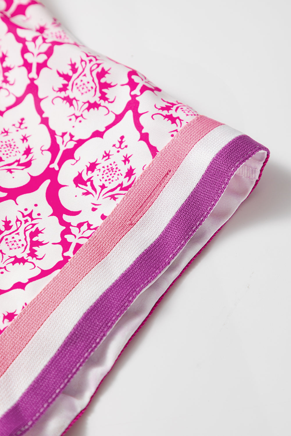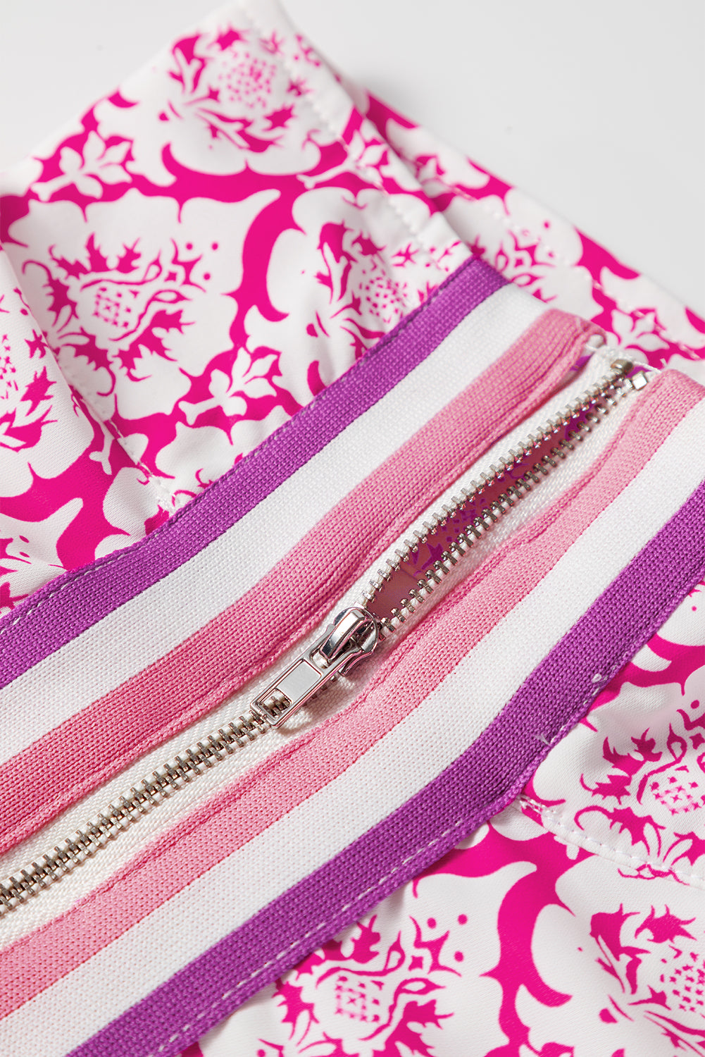 Pink Western Print Zipped Collar Short Sleeve Summer Blouse Top